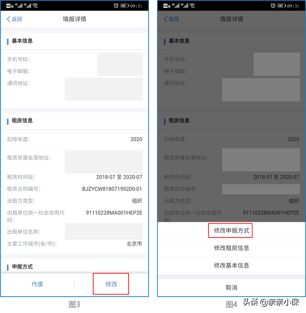 注意:这里的操作图示只以“住房租金专项附加扣除”修改申报方式为例,其它如同。