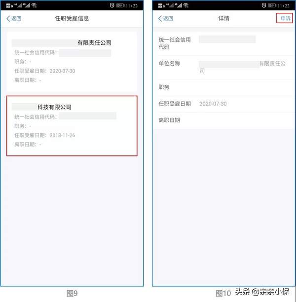 ②点击需要申诉的任职受雇信息的任意区域,进入“详情”页,在“详情”页右上角点击【申诉】按钮。如下图9-10: