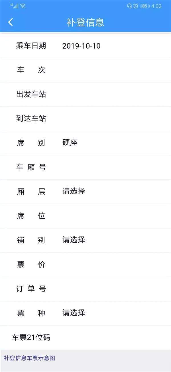 需要注意的是,电子订单上没有车票21位码,填写时这项空开就好,不用填写。