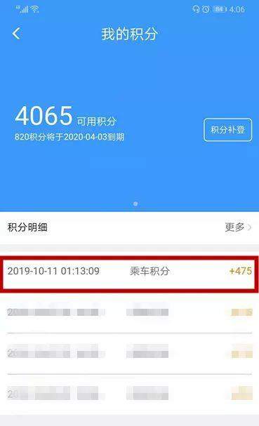 比如这是一张10月1日乘车的订单,可是假期都结束了,这次乘车积分还没有入账,这个时候就要使用到“积分补登”功能啦。