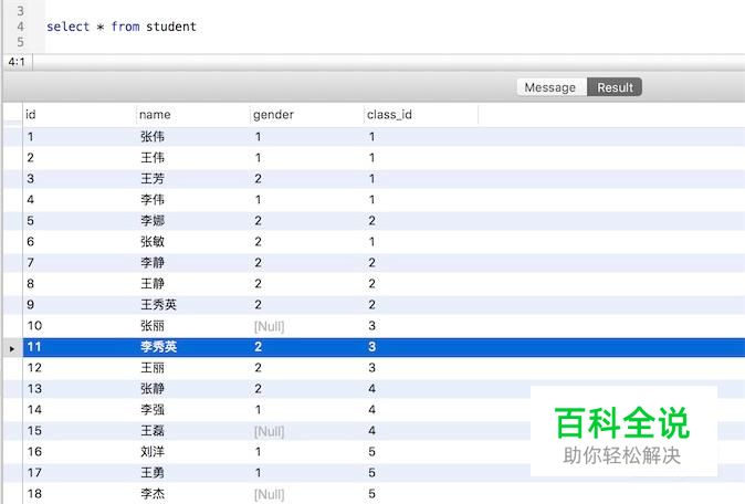 执行后得到的数据如图,就是 id从1到10的前10条数据,因为我们是按id升序来排序的。