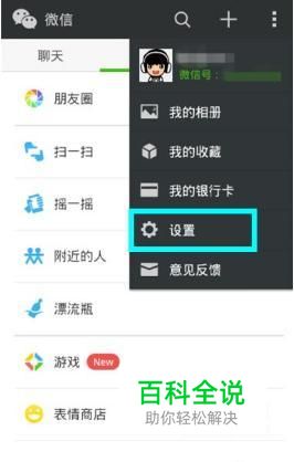 1.登陆微信,打开首页,点击右上角三点成柱状的图标,选择下拉菜单“设置”选项。