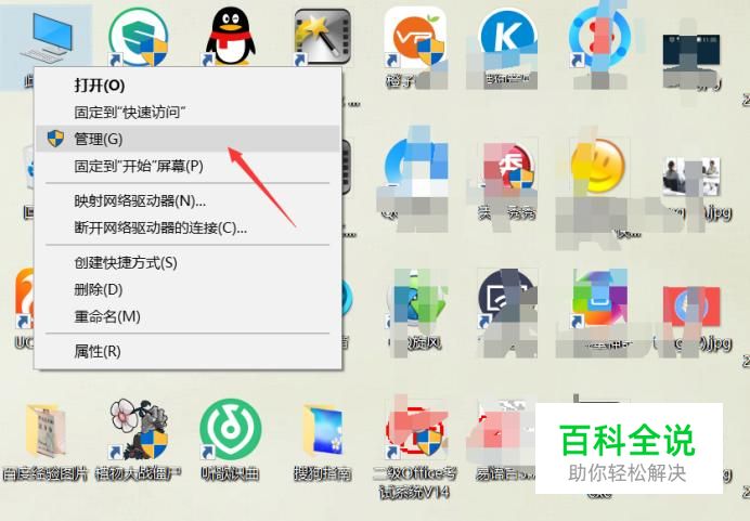 以win10系统为例,在“这台电脑”图标上右击鼠标,选择管理。