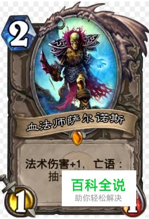 第二位:血法师萨尔诺斯。又是一张万金油的卡牌,几乎任何卡组都可带。2费可以配合一些法术打出更强的效果,并且还有抽一张牌的亡语。