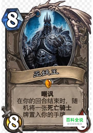 第四位:巫妖王。冰封王座版本最强的一张橙卡。不亏的身材以及嘲讽的效果,已经会不错了。而且还有你回合结束时附赠的一张死亡骑士卡牌。