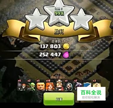 然后就可以放出巨人开路,再放武神和法师,打掉前面大部分建筑之后再放野蛮人之王,然后看情况给治疗术。