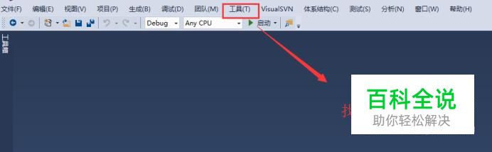 接下来我们一起来配置一下,首先在VS的工具栏中找到”工具”选项,如下图所示