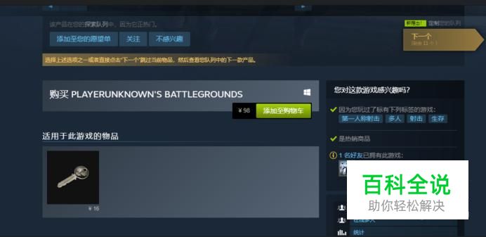 搜索后我们就能看见吃鸡这款游戏的介绍了,然后我们往下划,找到购买按钮,然后我们就可以购买这款游戏了。