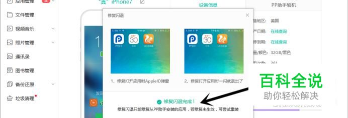 现在我们可以看到软件已经开始修复了,等待一会之后软件提示修复成功,我们就可以正常使用手机软件了。