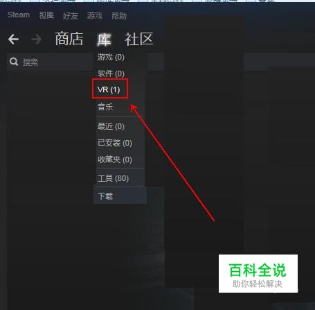 安装并运行steam程序,点击导航栏上的“库”选项。