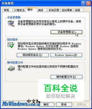第2步,打开“系统属性”对话框,切换到“硬件”选项卡,并单击“设备管理器”按钮,如图2010040509所示。 图2010040509 单击“设备管理器”按钮