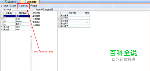 在权限设置界面左边的列表中选择已具备相应权限的目标,然后点“复制权限”按纽