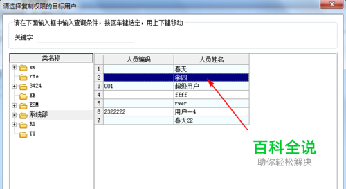 然后弹出目标职员选择对话框,点击权限复制操作-选择目标职员