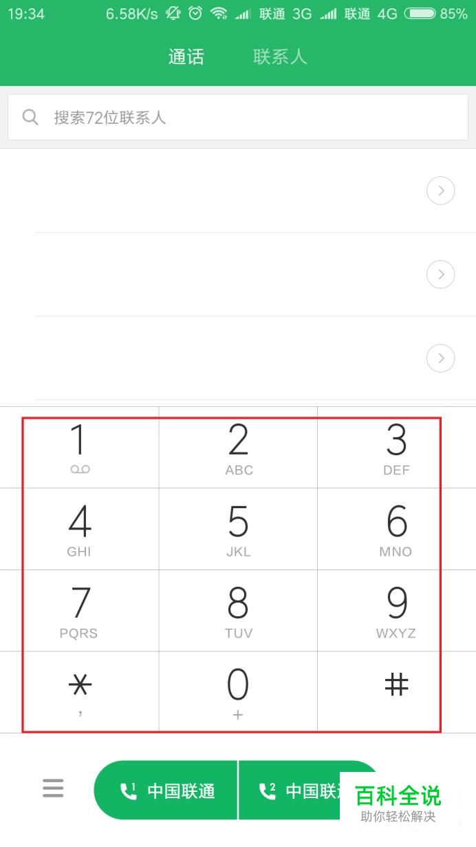 这里我以MIUI系统为例,打开手机中的联系人应用,打开拨号键盘,在拨号键盘中输入要保存的手机号码。