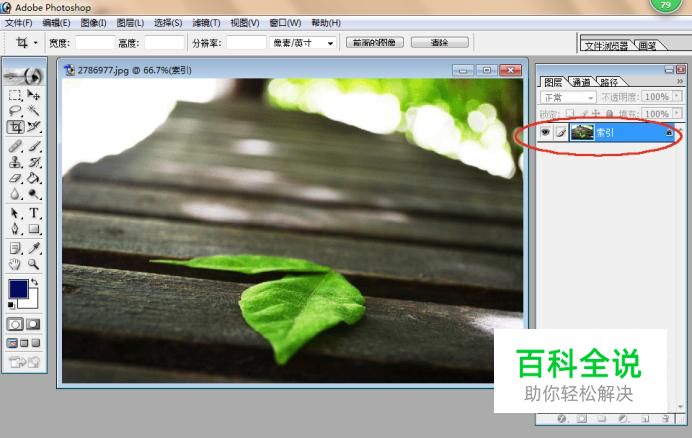 从PS软件中打开你需要处理的图片。打开图片后发现图层显示索引,图片此时为不可编辑状态。