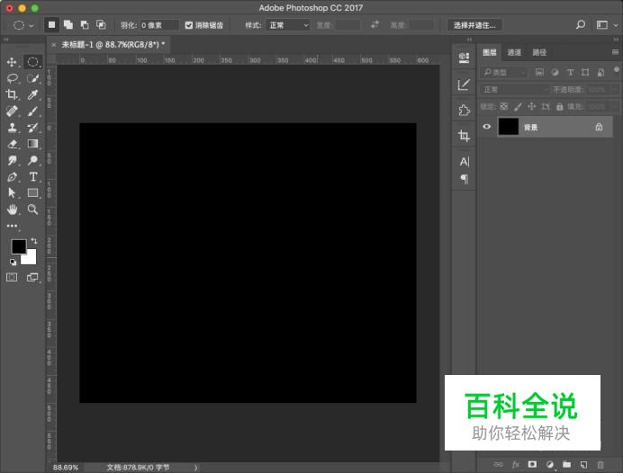 打开电脑中的PS,ctlrl+n新建一张画布,将画布填充为黑色。
