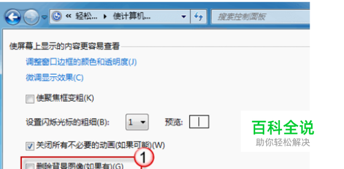 查看一下窗口底部“使屏幕上显示的内容更易于查看”部分“删除背景图像(如果有)”是否被勾选?如果有,请清空勾选。 检查壁纸能否更改?