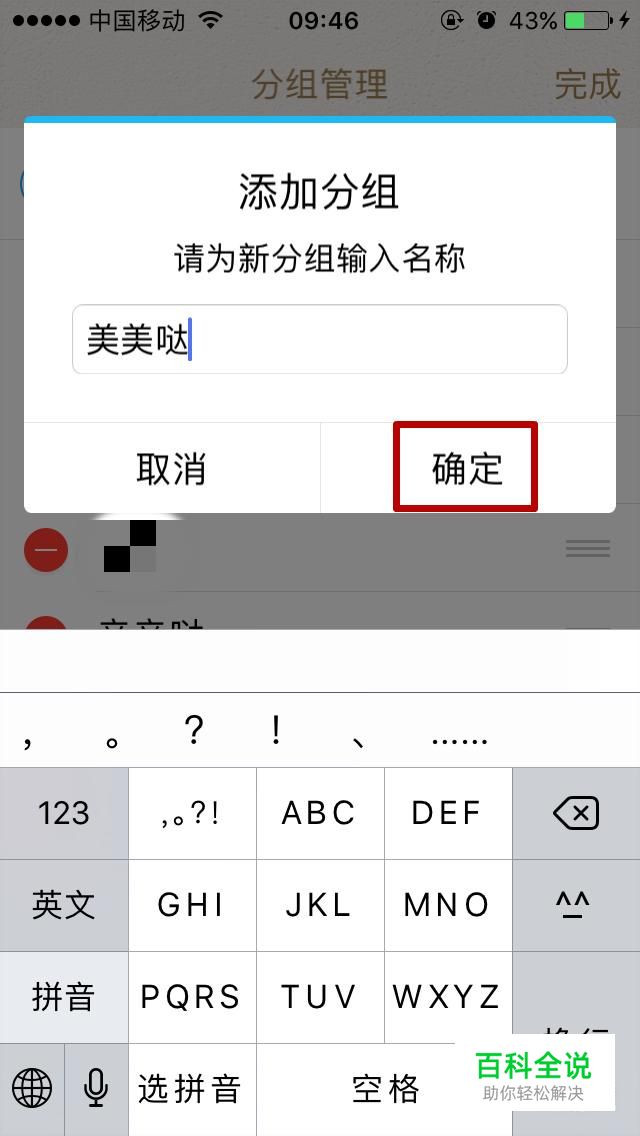 为新分组输入名称,然后点击确定;