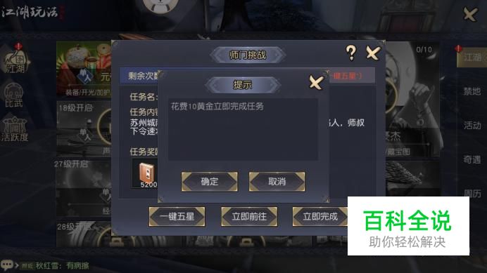 如果你想要快速完成任务的话,点击“立即完成”,消耗10黄金即可。