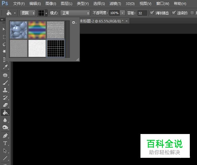 新建一个画布,使用油漆桶工具,将填充模式设置为图案,并选择刚刚自定义的图案。