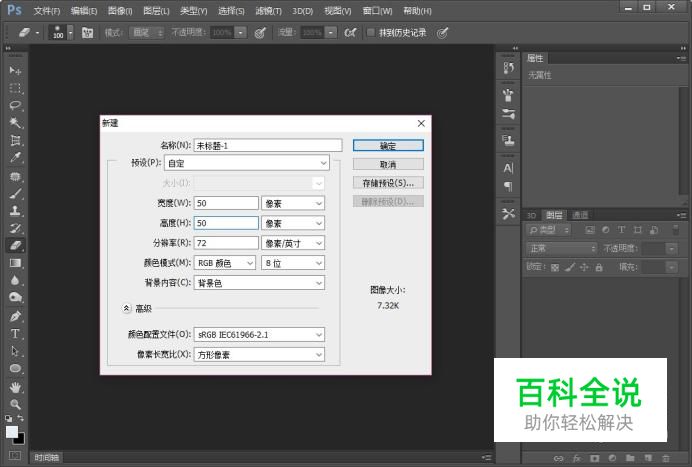 新建一块画布,画布的大小设置为50*50,背景色设置为黑色。