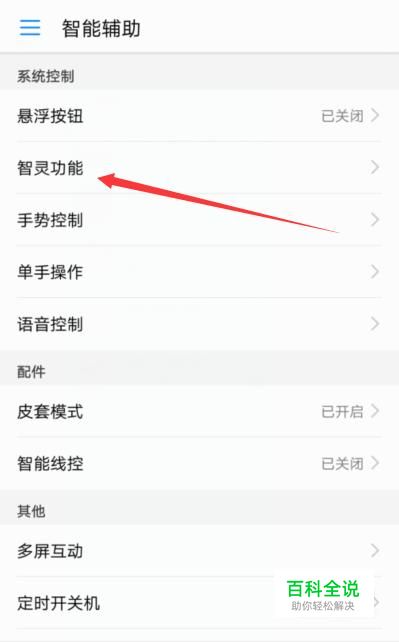 打开华为荣耀8手机,并点开设置,在其中找到智能辅助,在智能辅助里找到智灵功能并点开。