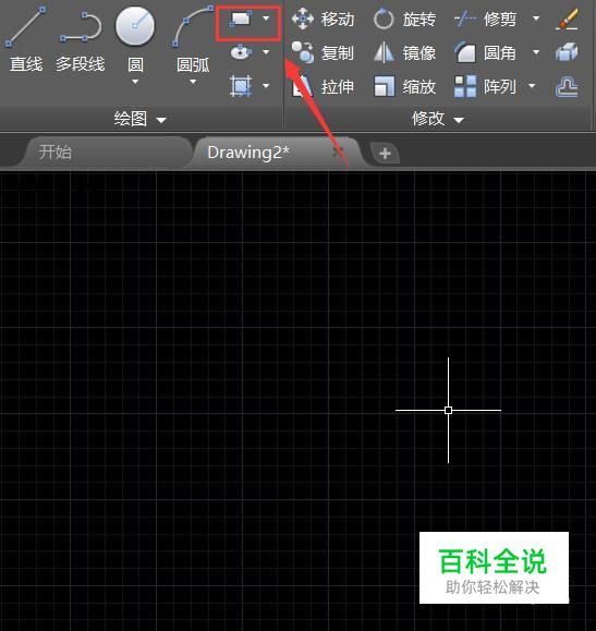打开CAD之后我们在工具区里找到矩形工具,如图所示: