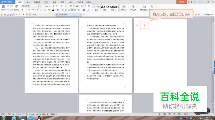 方法二 打开需要编辑的文档,将光标放在空白页内,按Delete键