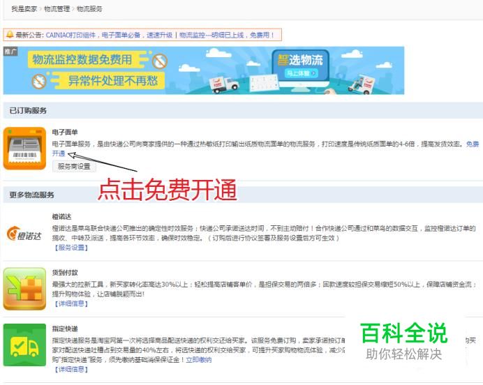 在我们的新弹出的网页中找到物流服务,进入到物流功能界面。