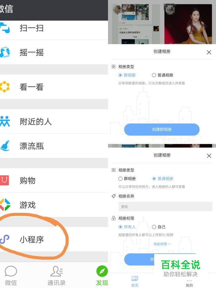 在微信的”发现“界面,找到小程序搜索【快相册】,第一个就是我们需要的小程序了