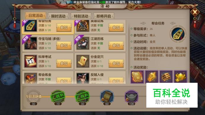 进入活动界面,在每日活动中点击“帮会任务”参加。
