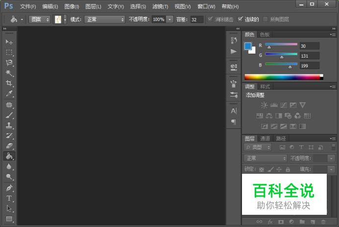 在桌面上找到ps的快捷图标,双击打开ps这款软件,进入ps的操作界面,如图所示: