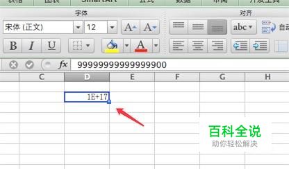 输入完成,点击回车键,可以看到现在单元格里显示的是1E+17了。