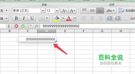 打开excel,我们在一个单元格里,输入一个很大的数字,如图。