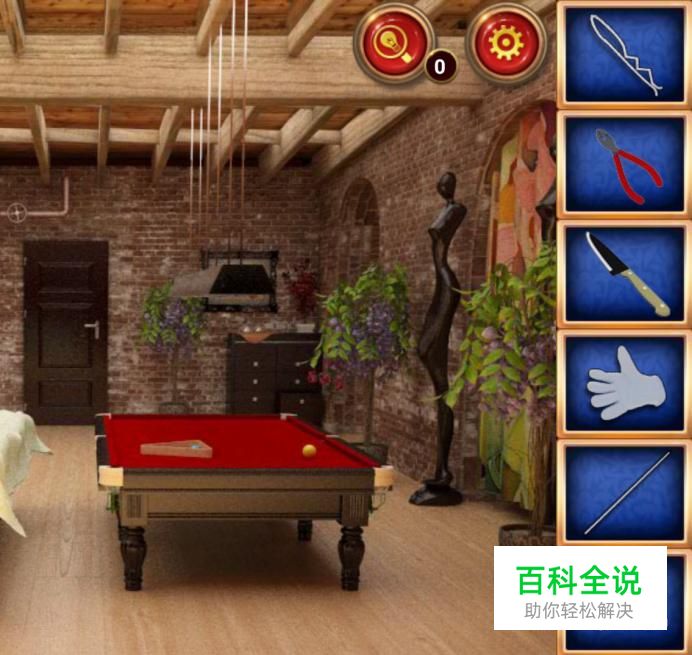 首先先把你能找到的物品全部找到,包括铁丝,钳子,刀具,手套,台球杆。