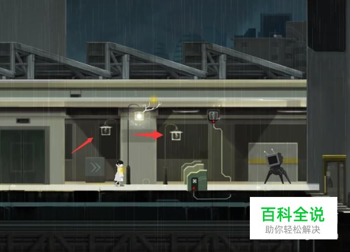 接着继续往前走,会遇到一个升降梯,我们先把光放在旁边的开关,等我们站在升降梯上后,再把光吸收,这时就可以升到上面了(如图所示)。