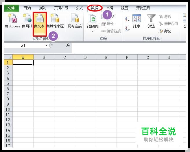 打开Excel工作簿,点开菜单栏"数据"按钮,再点击"自文本"按钮。