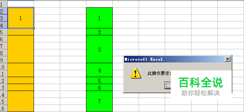 如果我们利用传统的拖拉方式,系统会提示“此操作要求合并单元格都具有相同大小”,显然,这是不可能的,我们不能对数据源表格的格式做操作,可能会导致数据混乱的。