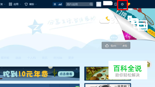 首先我们先打开qq空间,打开之后在页面的右上角有一个“设置”选项,单击该选项。