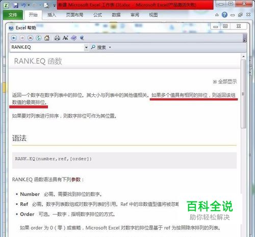RANK.EQ函数是返回一个数字在数字列表中的排位。大家可以看看帮助里它的具体用法说明。