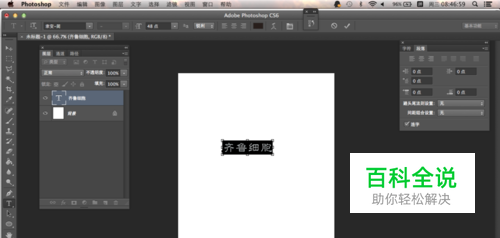 在ps左侧的工具栏中选择T(文字工具),然后在我们新建的图层中输入文字。我们在ps上方的右侧点击切换字符和段落的面板,可以在这个面板中加粗文字,调节字体等等内容的调整。
