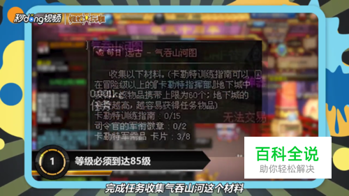 游戏等级达到85级开启远古屋,完成任务收集气吞山河这个材料