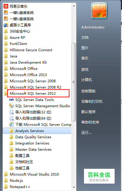打开电脑,点击开始,找到Sql Server安装后生成的文件夹,也可以通过搜索Sql Server 找到。如下图文件夹名称,注意自己安装的版本,我本地是安装了三个版本的Sql Server,所以有三个不同版本的文件夹。