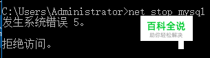 如果不是以管理员身份运行cmd执行命令net stop mysql会报“发生系统错误5 拒绝访问”