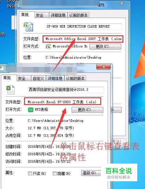 你可以单击鼠标右键盘,查看你的EXCEL表格属性,如下图,这两个属性是不一样的2007版本的是.XLSX,而2003版本的是.XLS