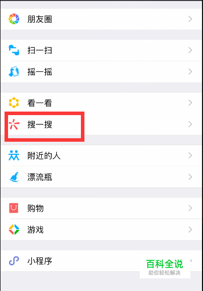 点击微信界面下方的【发现】,找到【搜一搜】进入。