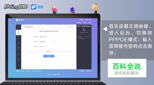 首先设置主路由器,进入后台,切换到pppoe模式,输入宽带账号密码,点击保存。
