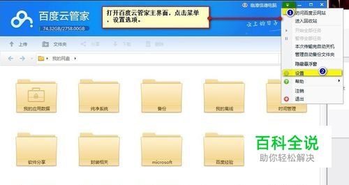 百度云管家设置:下载文件时,建议将下载速度设置为不限速,下载文件保存的文件夹,建议选择一个空闲空间比较大的分区。选择下载保存文件的目录,可以打开设置菜单----高级选项卡----单击“浏览”按钮可以选择保存的分区和目录。