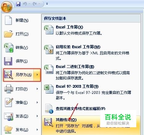 单击最左上角的园框,找到 “另存为”,选择“ 其它格式”
