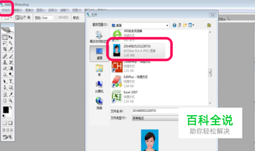 打开Photoshop软件,单击“文件”菜单/"打开"命令,打开所要处理的照片。